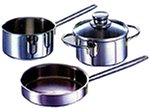 両手鍋と片手鍋は口径が同じなのでスタッキング収納ができません。